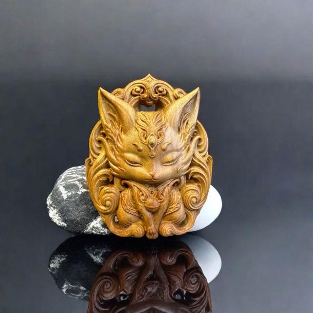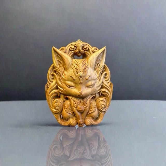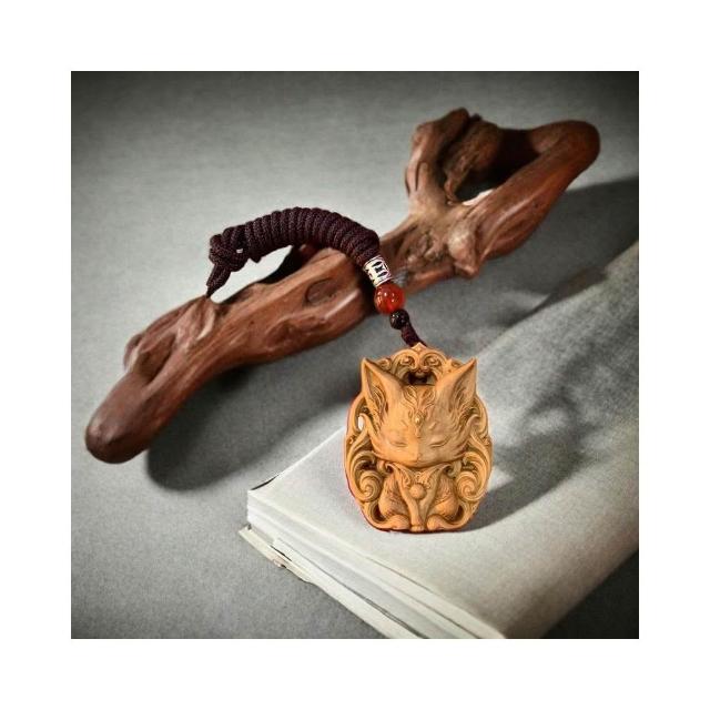 印度老山檀香掛件 九尾狐鳳九平安雕刻 木雕手把 項鏈吊墜 招財