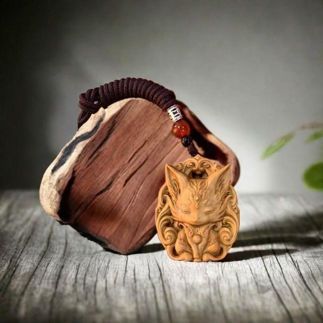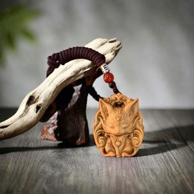 印度老山檀香掛件 九尾狐鳳九平安雕刻 木雕手把 項鏈吊墜 招財