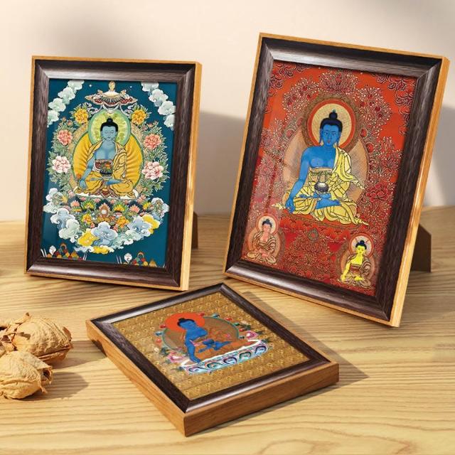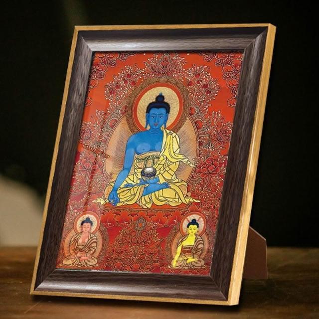 藥師佛唐卡佛像 畫書房辦公室桌面擺臺 藥房佛堂掛畫琉璃光如來結緣
