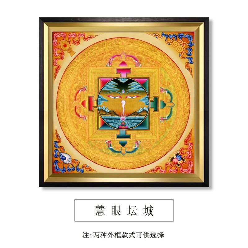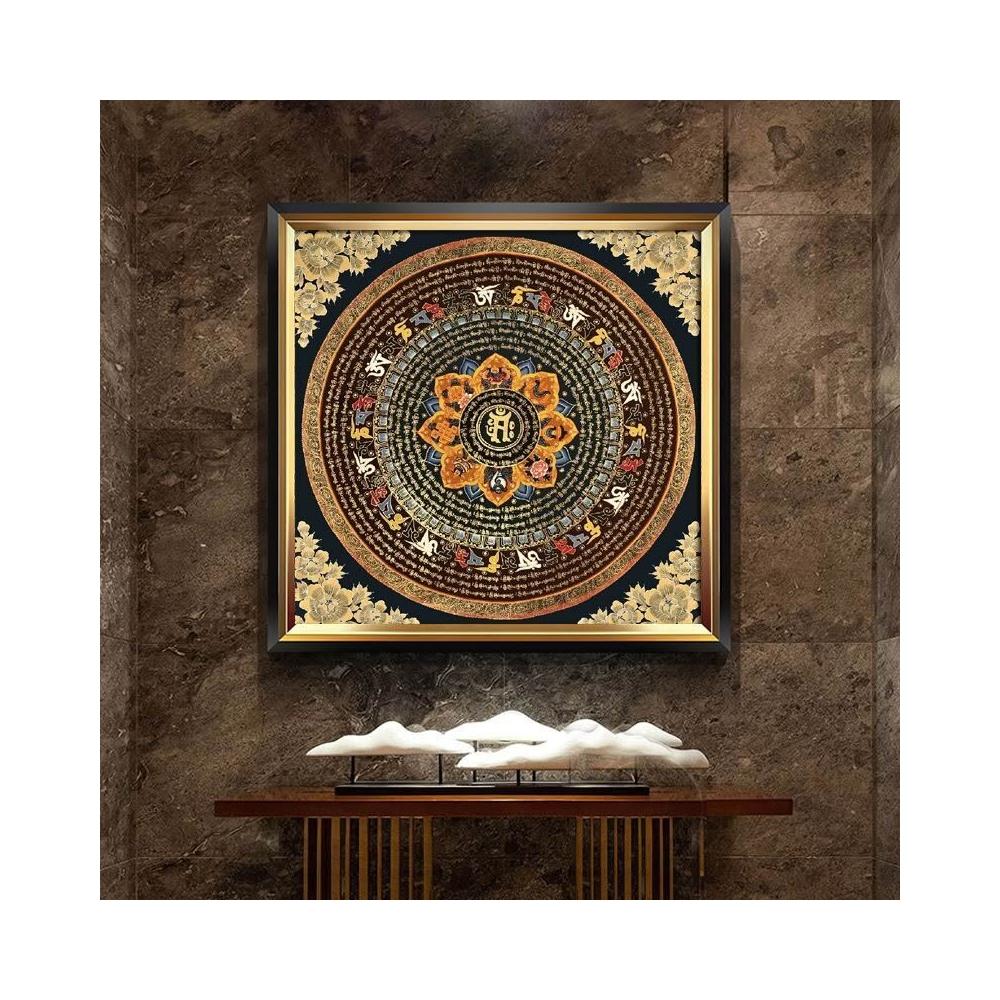 藏族壇城掛畫 唐卡玄關裝飾畫 輕奢中式 鎮宅佛堂招財咒輪 西藏墻壁畫