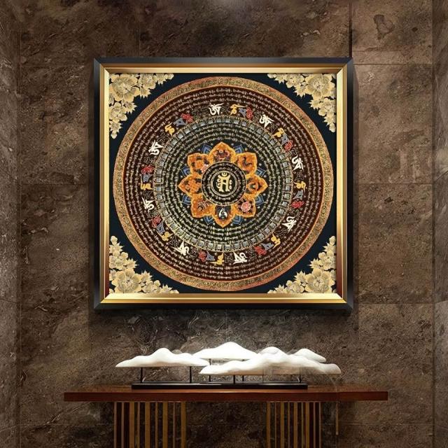 藏族壇城掛畫 唐卡玄關裝飾畫 輕奢中式 鎮宅佛堂招財咒輪 西藏墻壁畫
