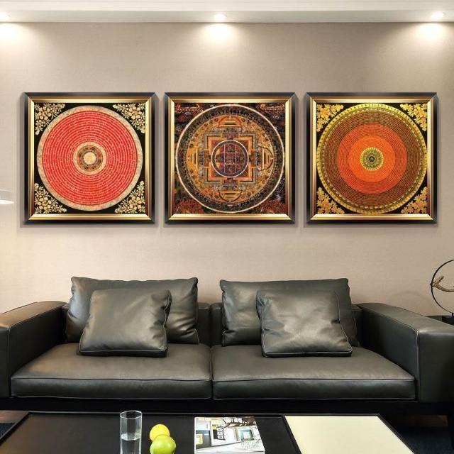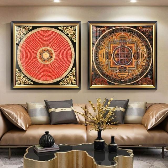 藏族壇城掛畫 唐卡玄關裝飾畫 輕奢中式 鎮宅佛堂招財咒輪 西藏墻壁畫