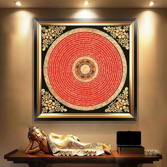 藏族壇城掛畫 唐卡玄關裝飾畫 輕奢中式 鎮宅佛堂招財咒輪 西藏墻壁畫