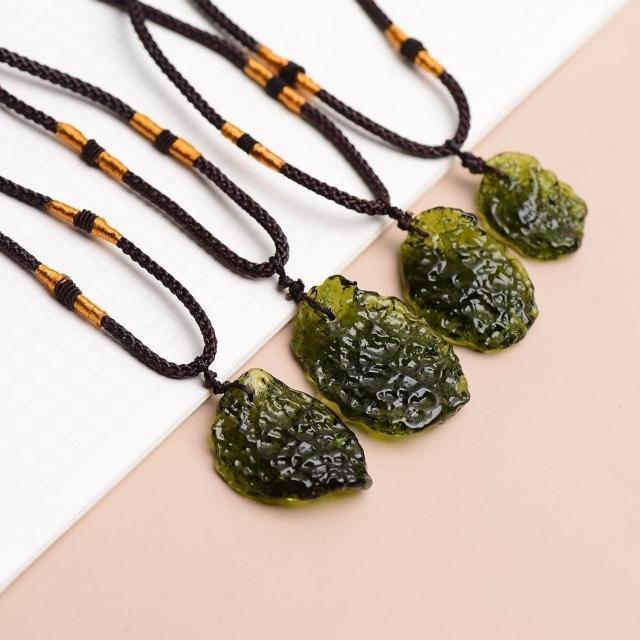 人造捷克隕石綠玻璃原石吊墜 綠玻璃隨形項鏈男女款吊墜