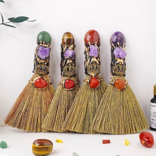 迷你掃帚 女巫魔法掃把 女巫道具女巫房間裝飾 水晶原石除塵掃帚