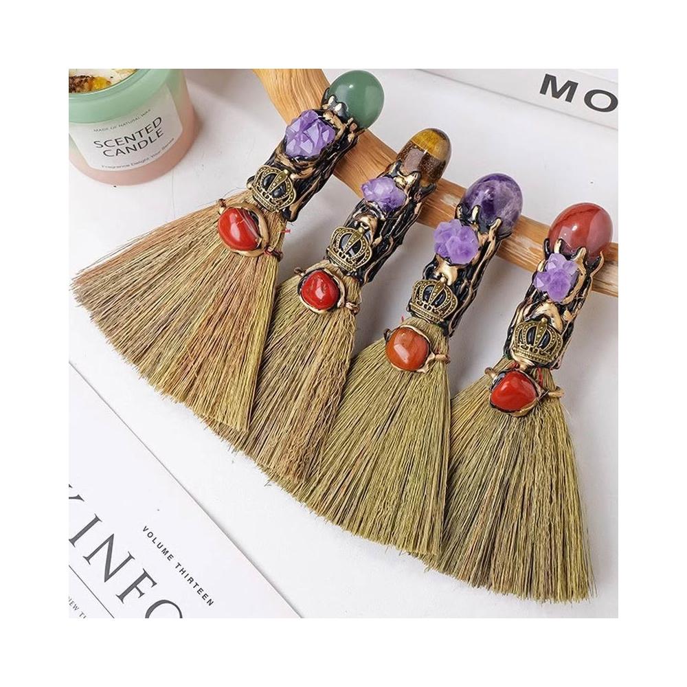 迷你掃帚 女巫魔法掃把 女巫道具女巫房間裝飾 水晶原石除塵掃帚