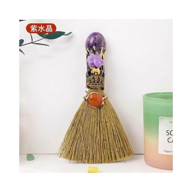 迷你掃帚 女巫魔法掃把 女巫道具女巫房間裝飾 水晶原石除塵掃帚
