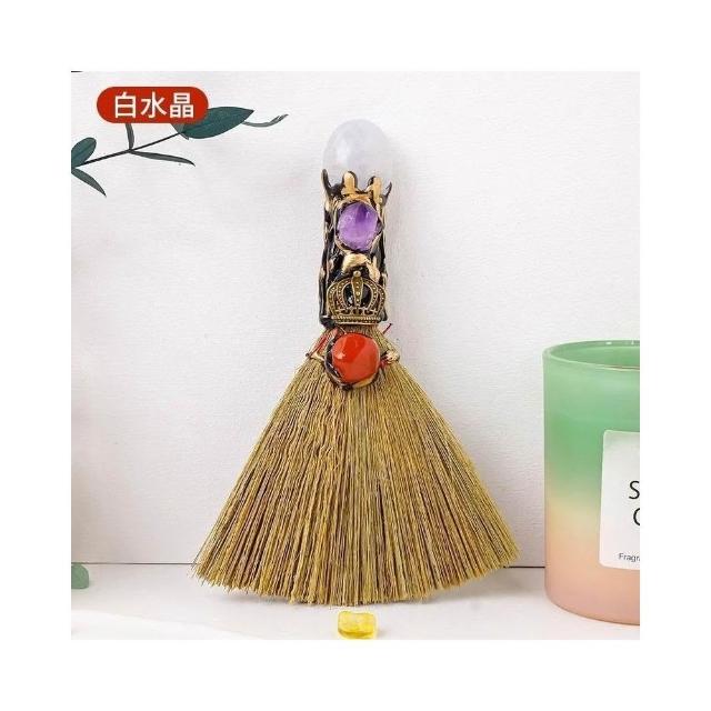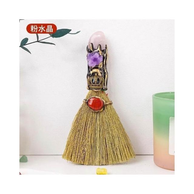 迷你掃帚 女巫魔法掃把 女巫道具女巫房間裝飾 水晶原石除塵掃帚