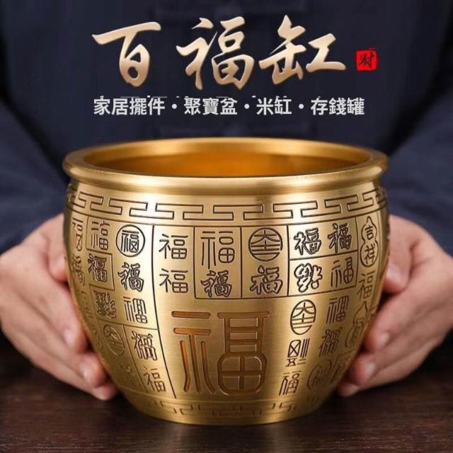黃銅米缸 人財兩旺 聚財百福 招財神器 聚寶盆 家庭擺件 五福缸 開運招財米缸
