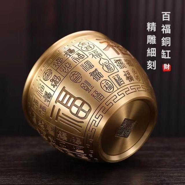 黃銅米缸 人財兩旺 聚財百福 招財神器 聚寶盆 家庭擺件 五福缸 開運招財米缸