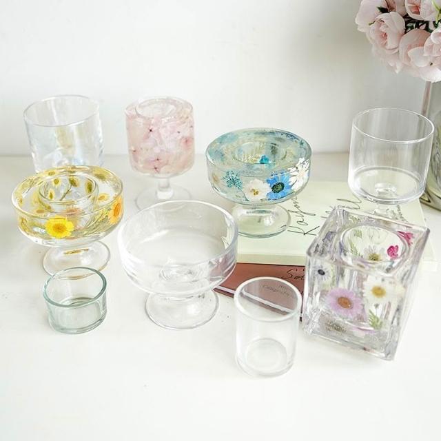 創意壓花水晶燭臺 diy香氛蠟燭杯 玻璃容器杯 擴香石杯