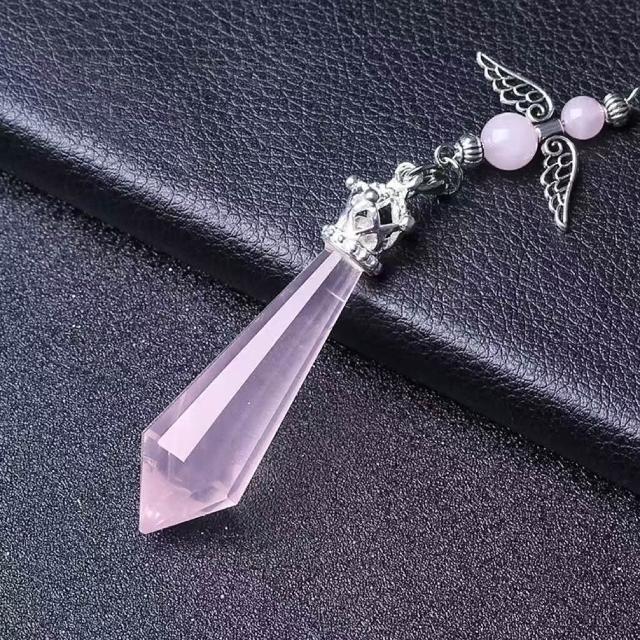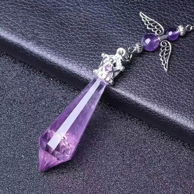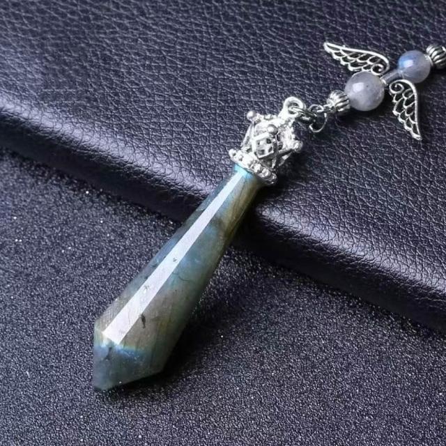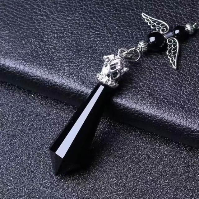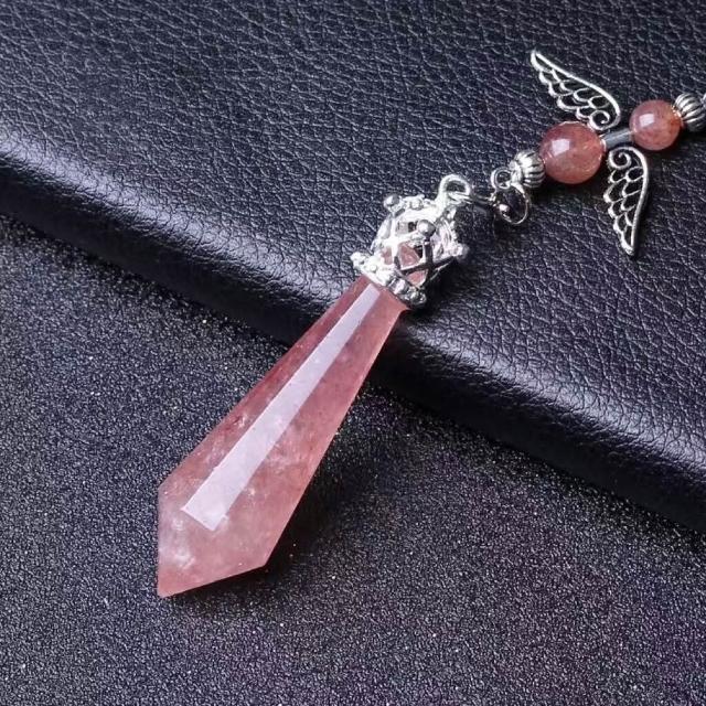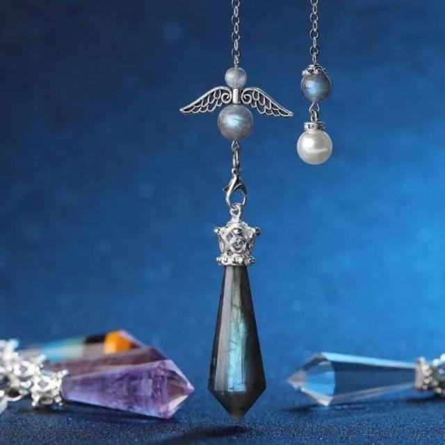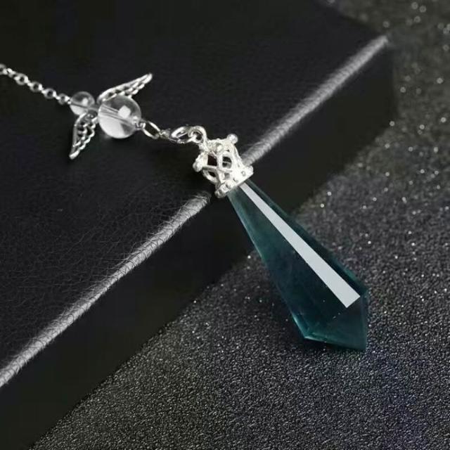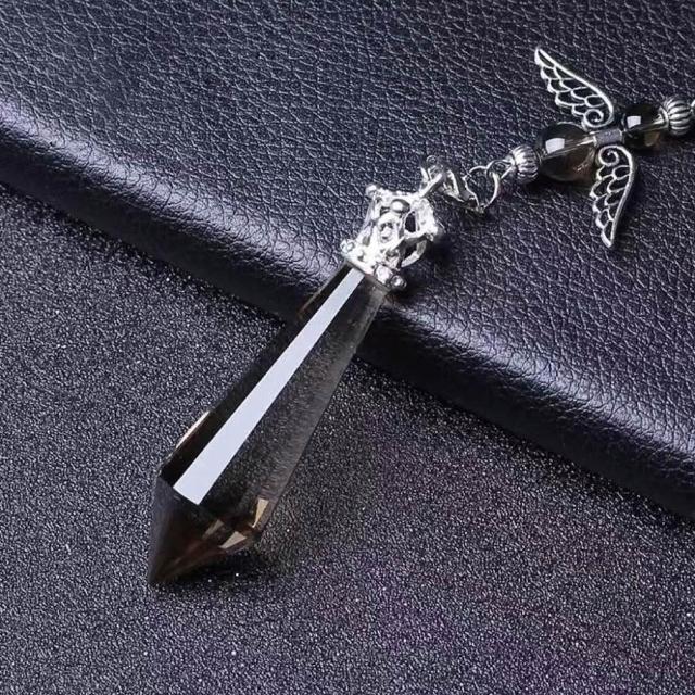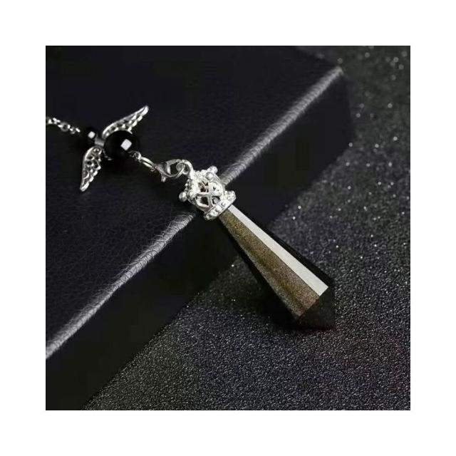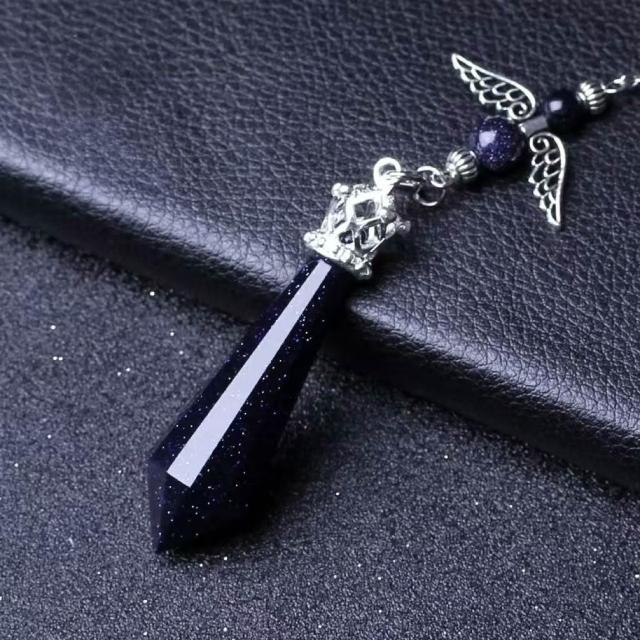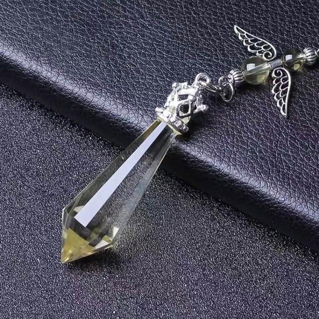 天然水晶靈擺吊墜 灰月光粉紫白茶黃藍砂黑曜石 招財項鏈男女掛件