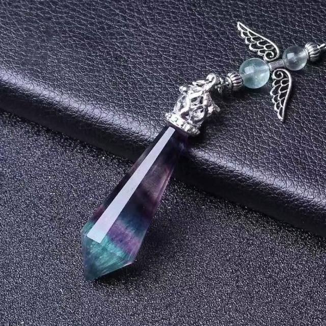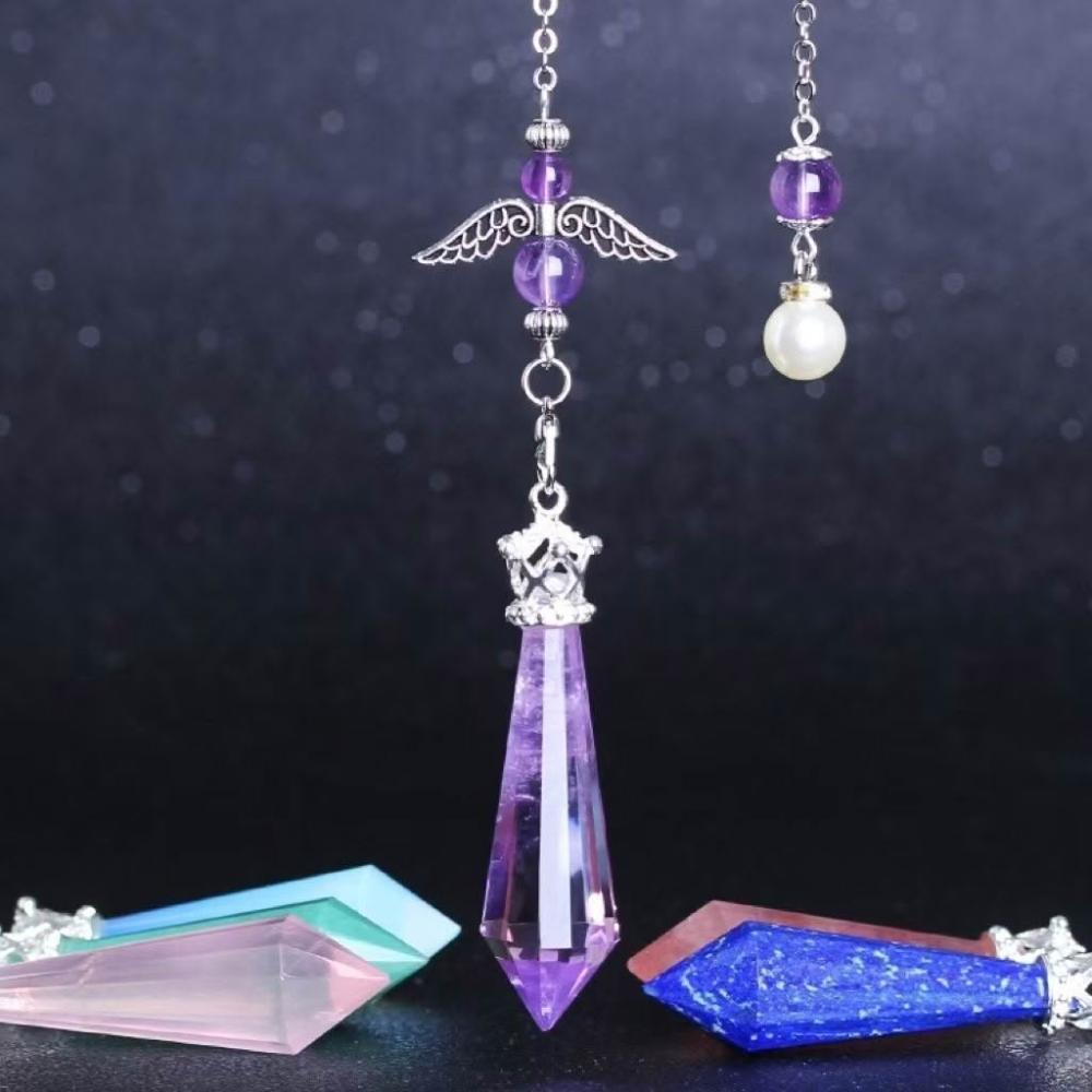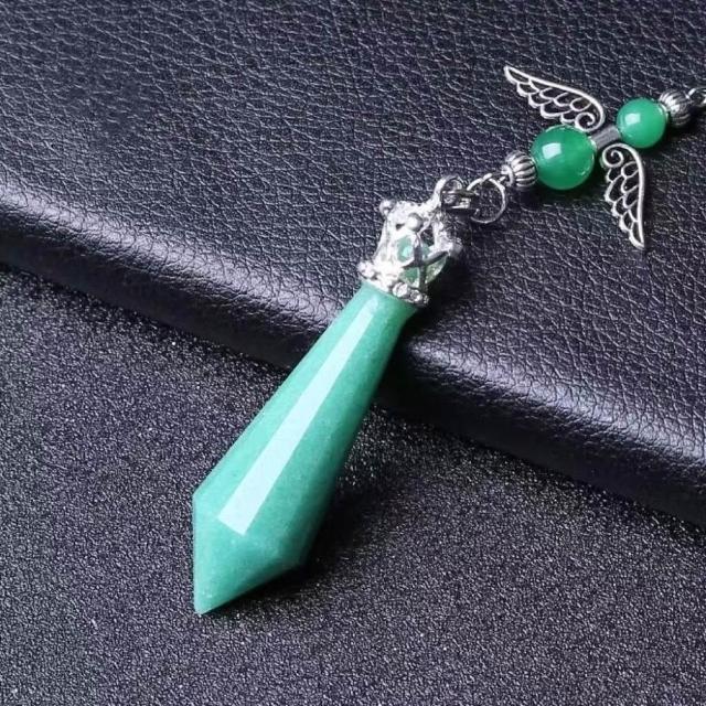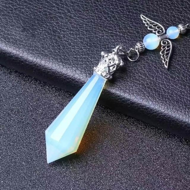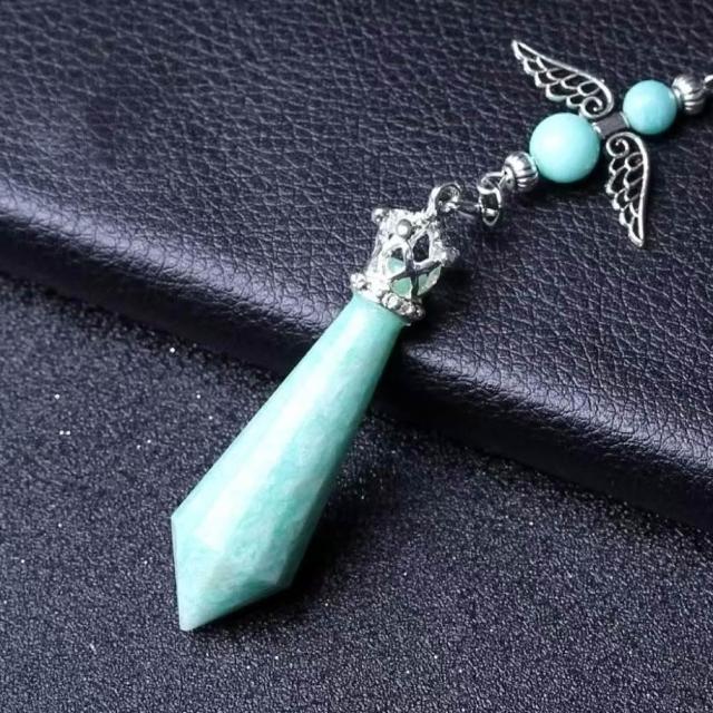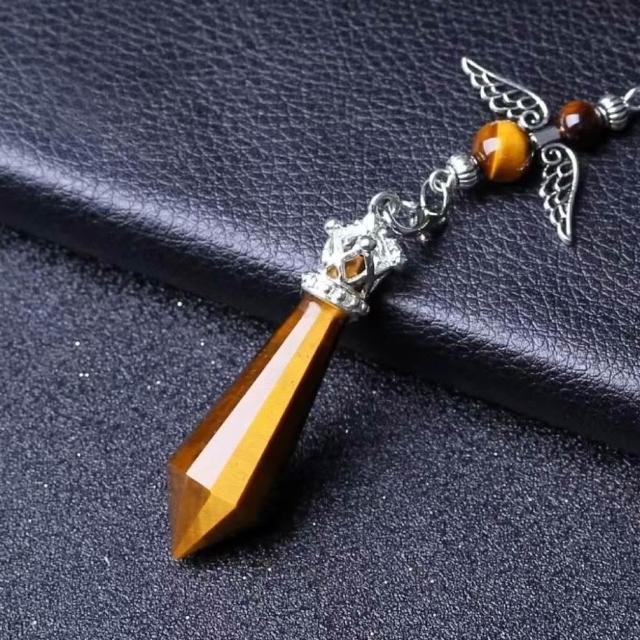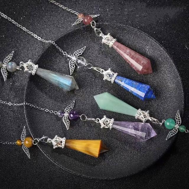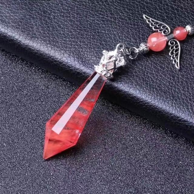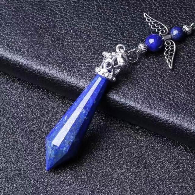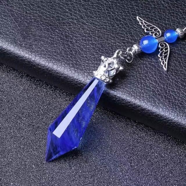 天然水晶靈擺吊墜 灰月光粉紫白茶黃藍砂黑曜石 招財項鏈男女掛件