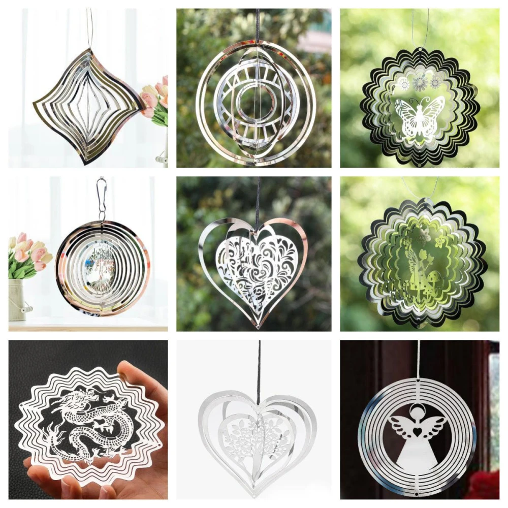 北歐3D風 曼陀羅風鈴 反射風鈴 風轉掛飾 金屬風鈴 蝕刻不銹鋼雕花鋼片