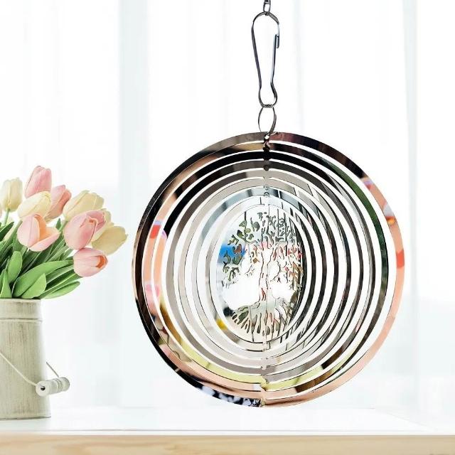 北歐3D風 曼陀羅風鈴 反射風鈴 風轉掛飾 金屬風鈴 蝕刻不銹鋼雕花鋼片