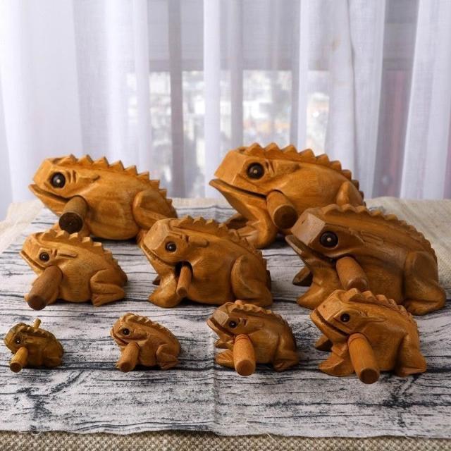 泰國發聲木青蛙 手工雕刻實木招財蛙 家居裝飾蟾蜍擺件禮品