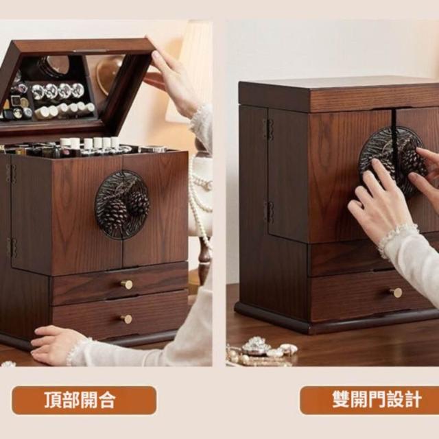 化妝收納盒 木質多層一體 首飾盒梳妝臺 臥室桌上防塵 古典置物架
