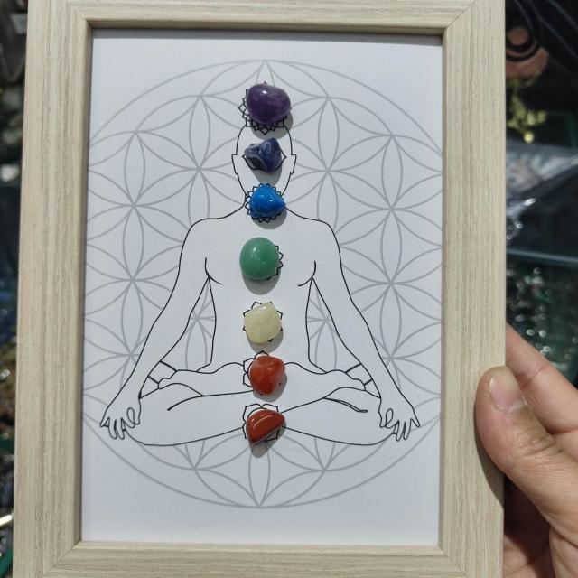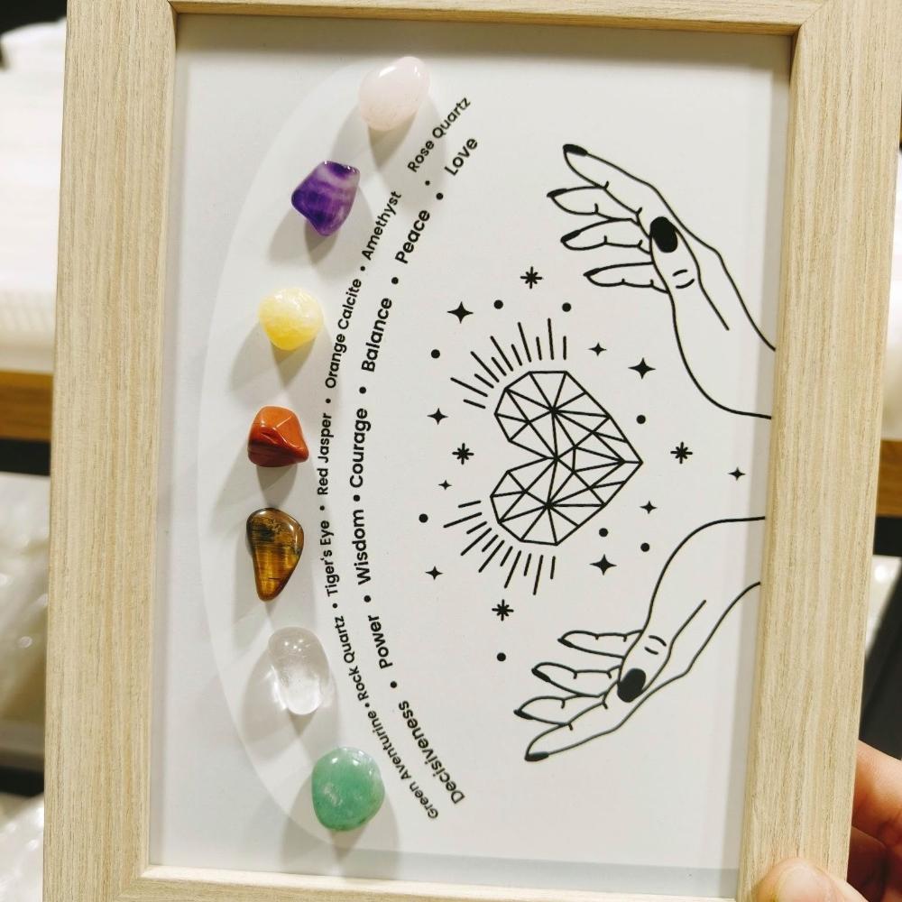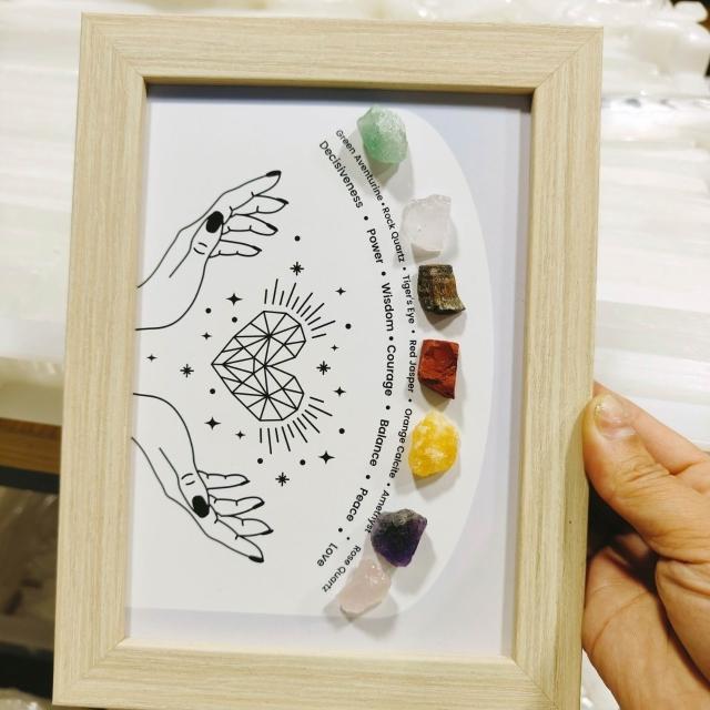 七彩原石水晶療愈相框 瑜伽家居擺臺