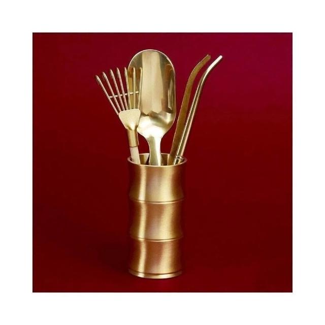 香爐香灰清理工具套裝 黃銅 (竹節瓶 耙子 平灰鏟 夾子 佛塵掃)