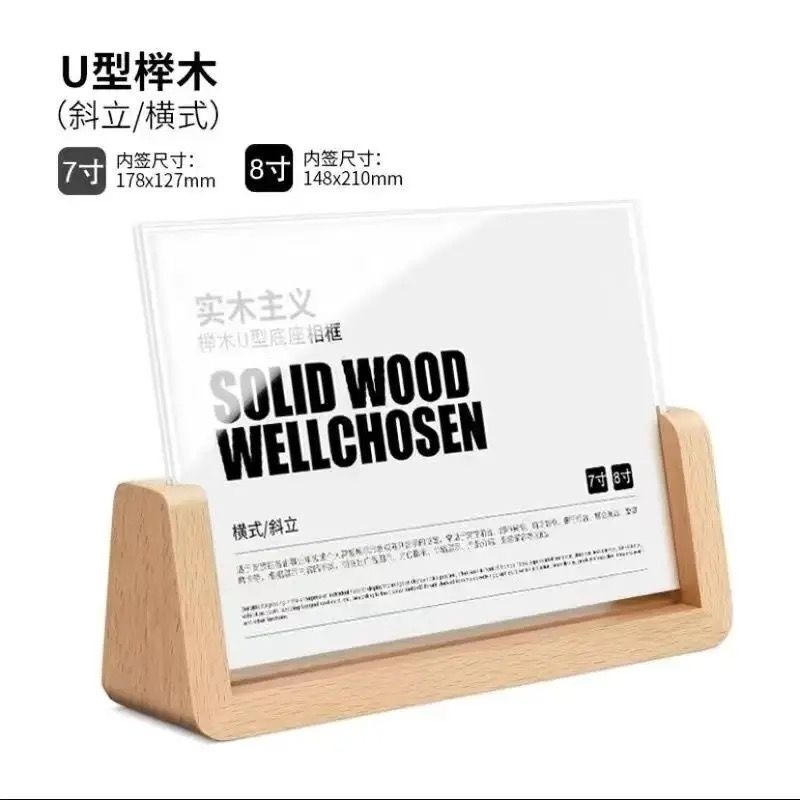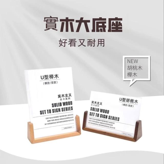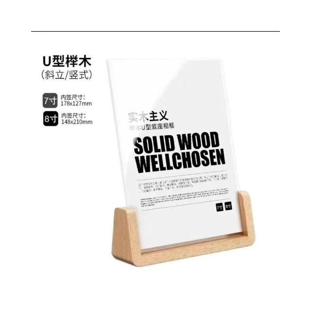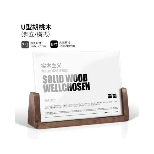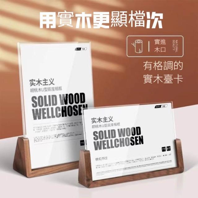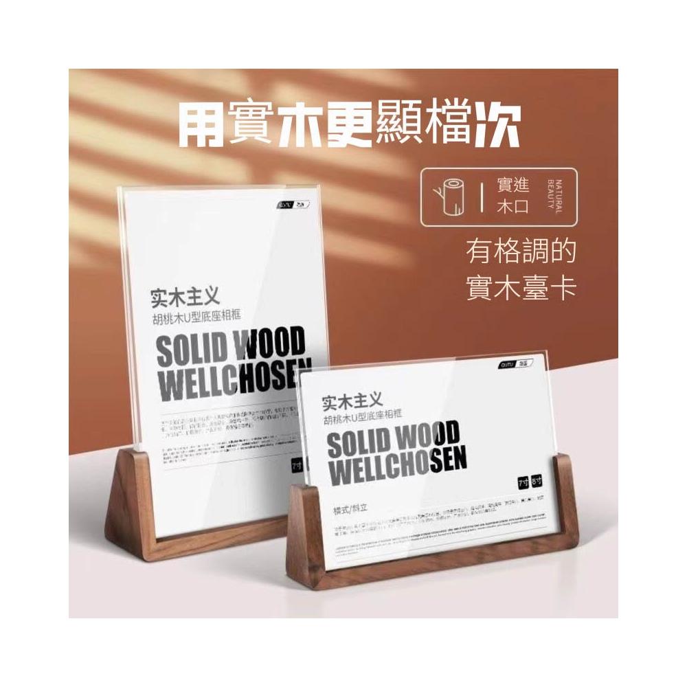 U形實木臺卡 展示牌 桌面擺臺 相框 價目表( 胡桃木 櫸木 5寸 7寸 8寸 A4 A6)
