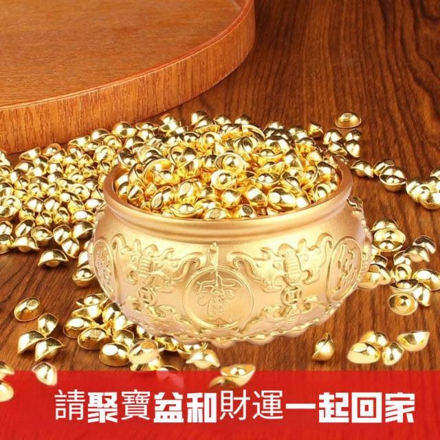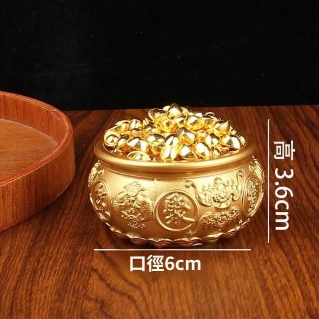 黃銅聚寶盆 五福聚寶盆 沙金小元寶 家居客廳純銅擺件