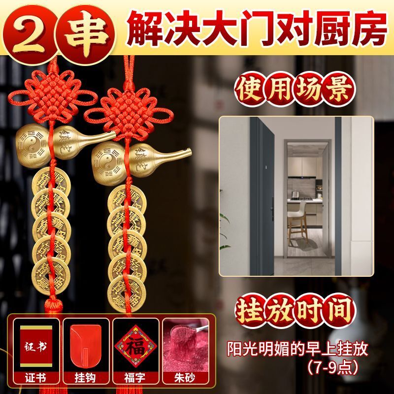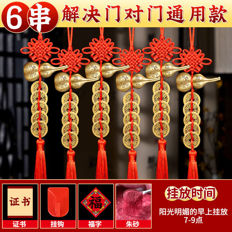 五帝錢門對門掛件 銅葫蘆黃銅擺件 廁所飾品擺件 家居解決門對門掛件