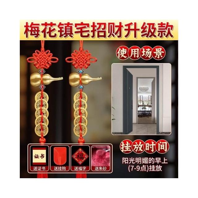 五帝錢門對門掛件 銅葫蘆黃銅擺件 廁所飾品擺件 家居解決門對門掛件