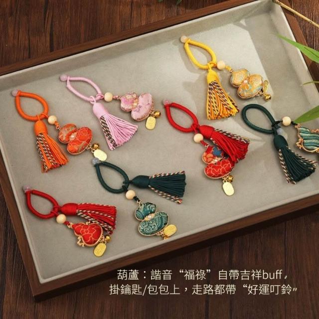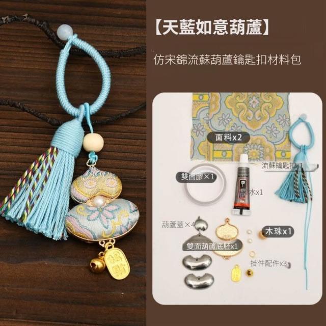手工宋錦葫蘆掛飾材料包 吊墜底胚配件 DIY鑰匙扣 宋錦diy材料