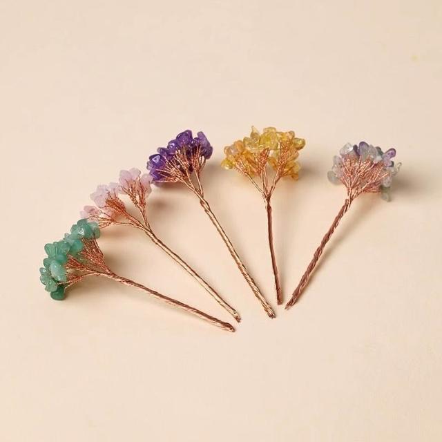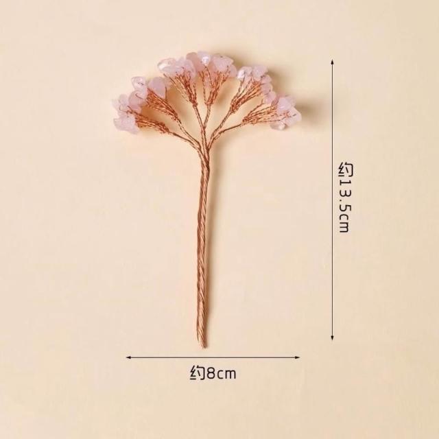 天然水晶石發財樹樹枝 招財樹樹頭 手工編織水晶石樹枝 DIY水晶發財樹花束樹枝 半成品