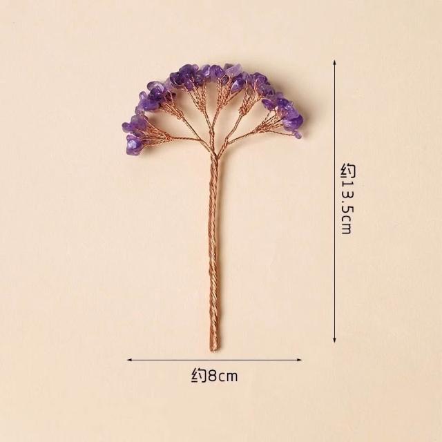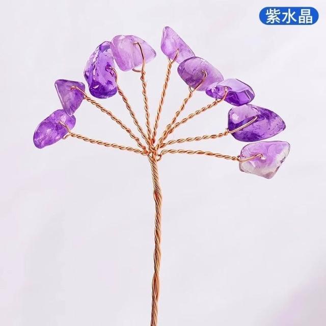 天然水晶石發財樹樹枝 招財樹樹頭 手工編織水晶石樹枝 DIY水晶發財樹花束樹枝 半成品