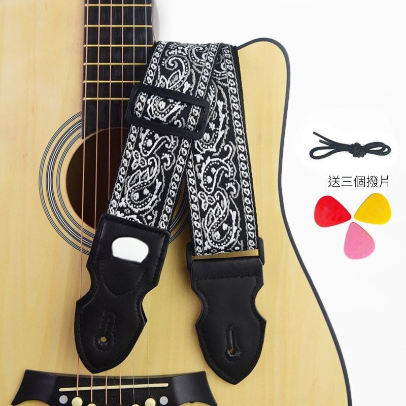 加厚加寬刺繡吉他背帶 美式朋克調節背帶 波西米亞復古風背带 可插撥片