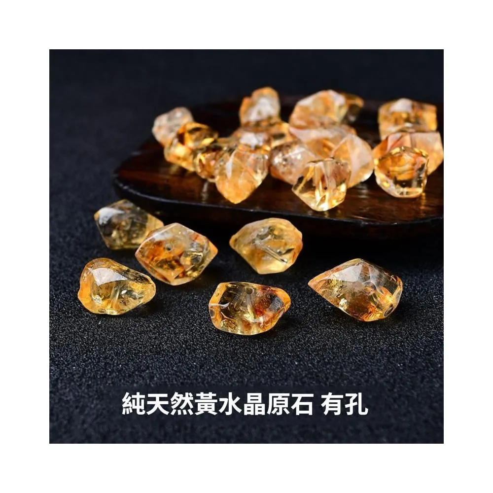 品質純天然黃水晶原石 有孔散珠 招財黃塔山 黃幽靈 不規則隨型碎石 手串手鏈材料