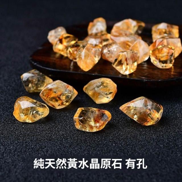 品質純天然黃水晶原石 有孔散珠 招財黃塔山 黃幽靈 不規則隨型碎石 手串手鏈材料