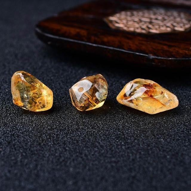 品質純天然黃水晶原石 有孔散珠 招財黃塔山 黃幽靈 不規則隨型碎石 手串手鏈材料
