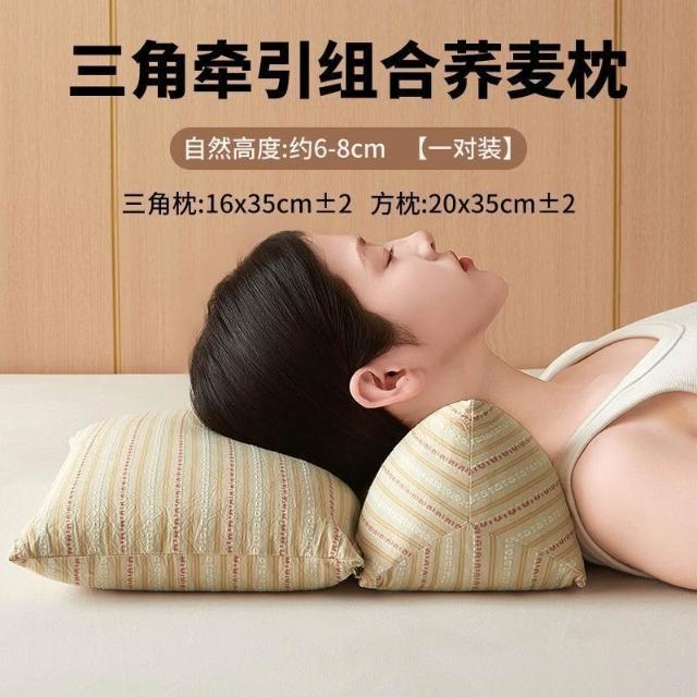 全棉荞麥枕頭 三角連體枕 護頸椎助睡眠 可拆卸組合枕芯