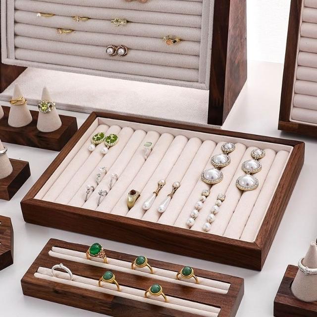 高顏值胡桃木戒指展示架 耳釘耳環飾品收納托盤 戒指戒圈收納陳列架