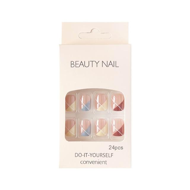 💥虧本冲評&買一送一✨ 清新幾何穿戴甲線條指甲貼片法式美甲片春天假指甲美甲貼片成品甲
