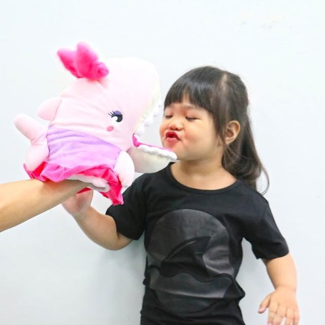 花蓮遠雄海洋公園鯊魚頭手偶大-粉紅SHONKY女友 鯊魚玩偶 鯊魚絨毛玩偶