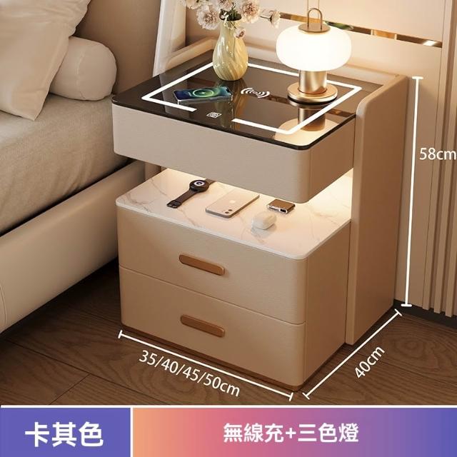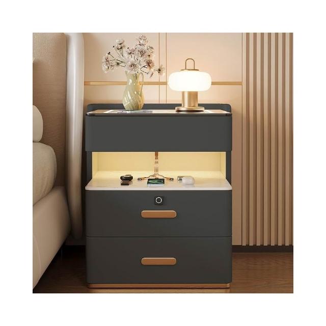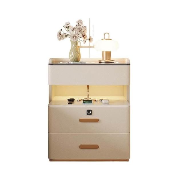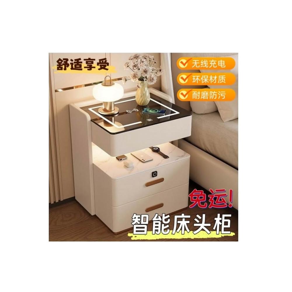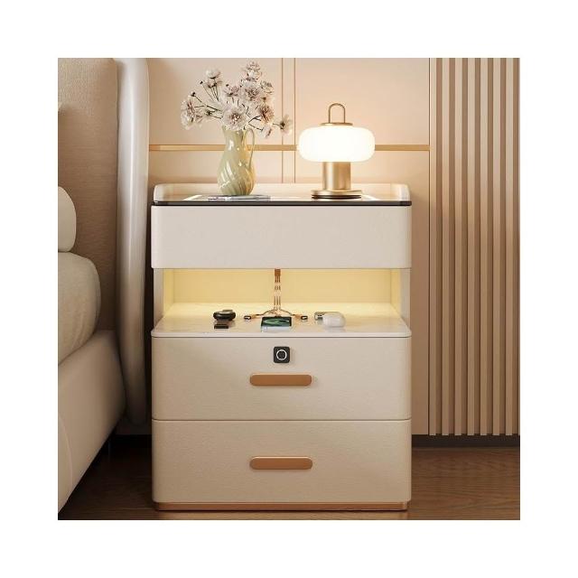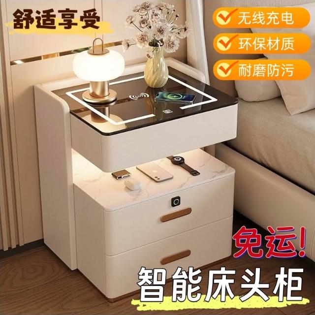 床頭櫃 智能簡約 實木貓爪皮 家用多功能 收納櫃 迷你櫃子(床頭櫃 邊櫃 收納櫃 儲物櫃)