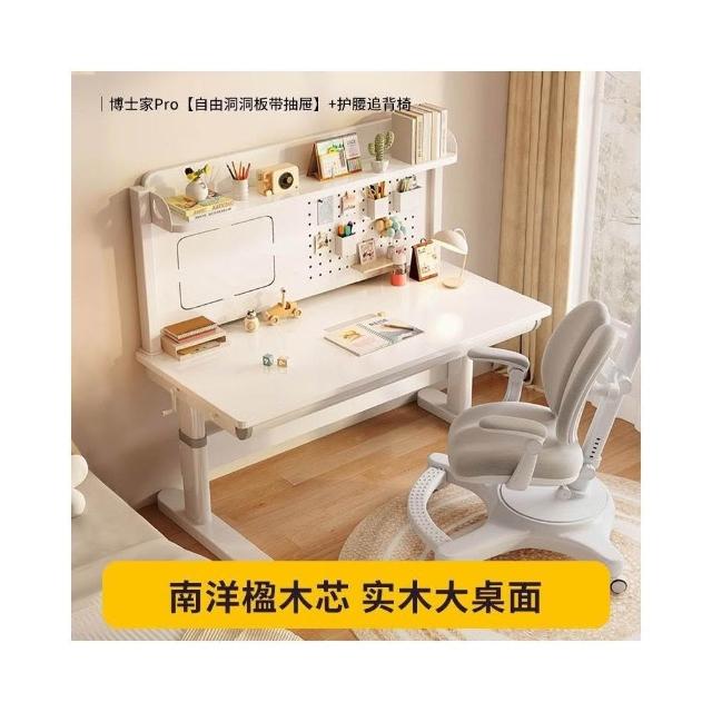 高品質學習桌 兒童學習桌 實木升降桌 課桌椅 學生家用寫字桌 手動升降書桌 矯正坐姿