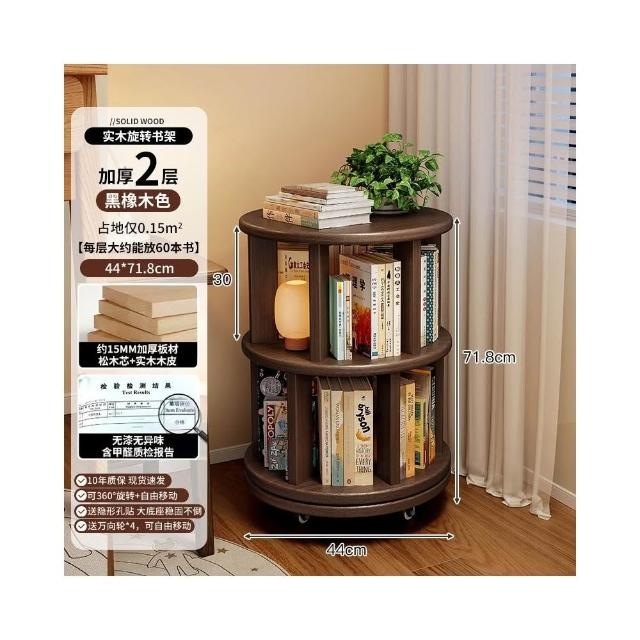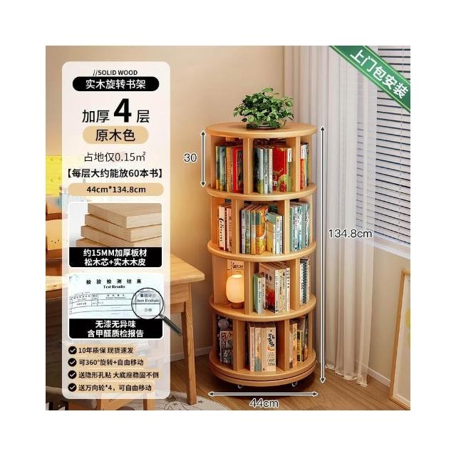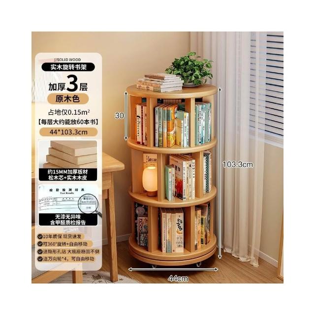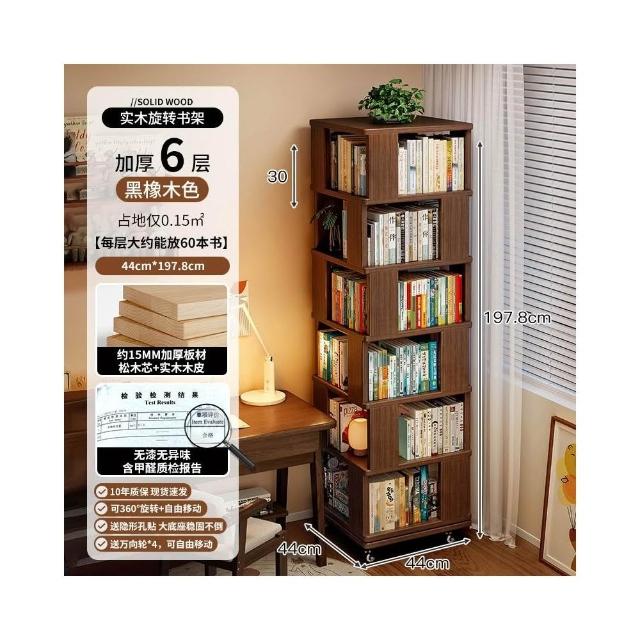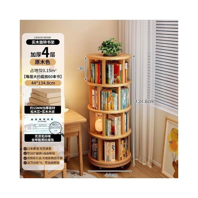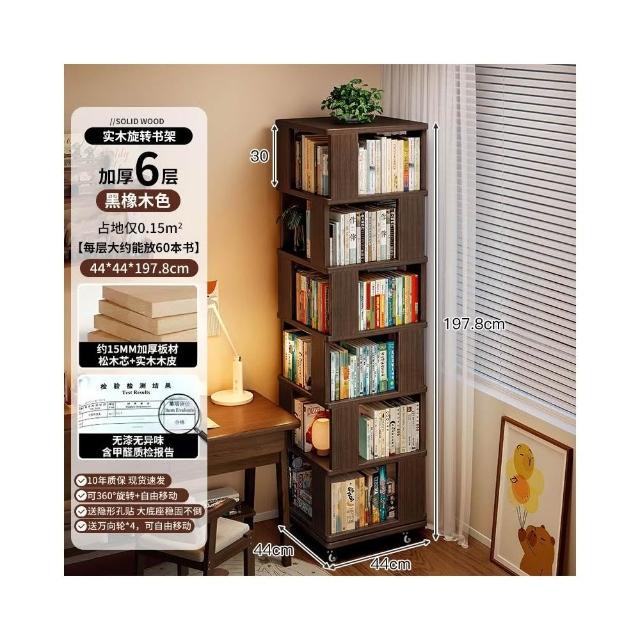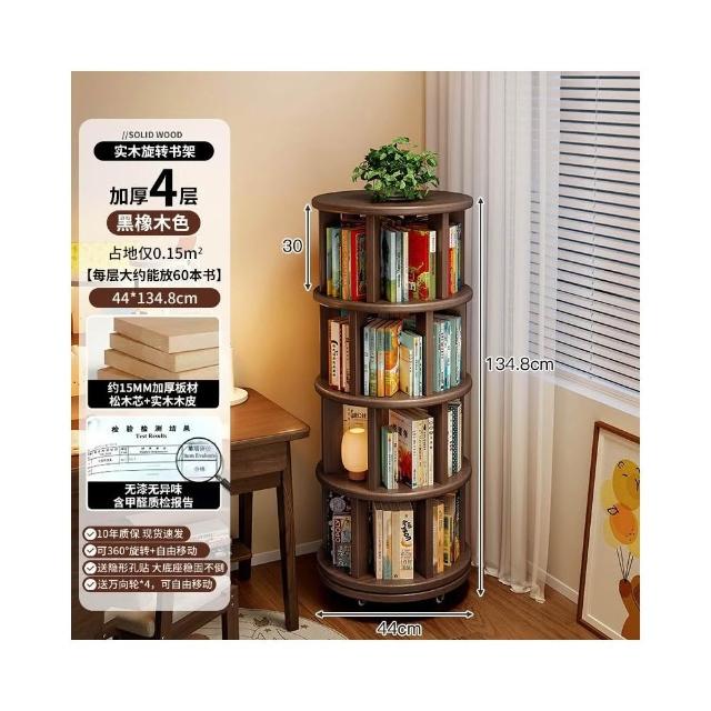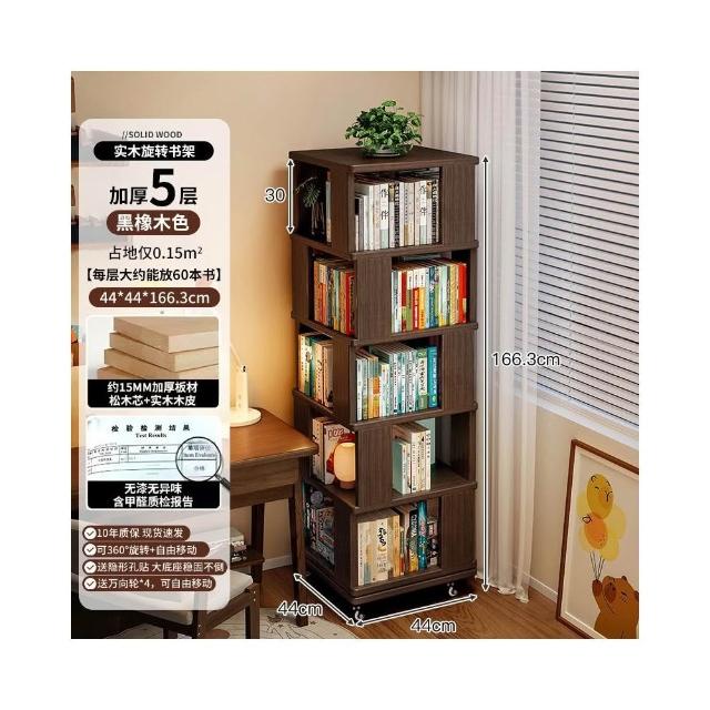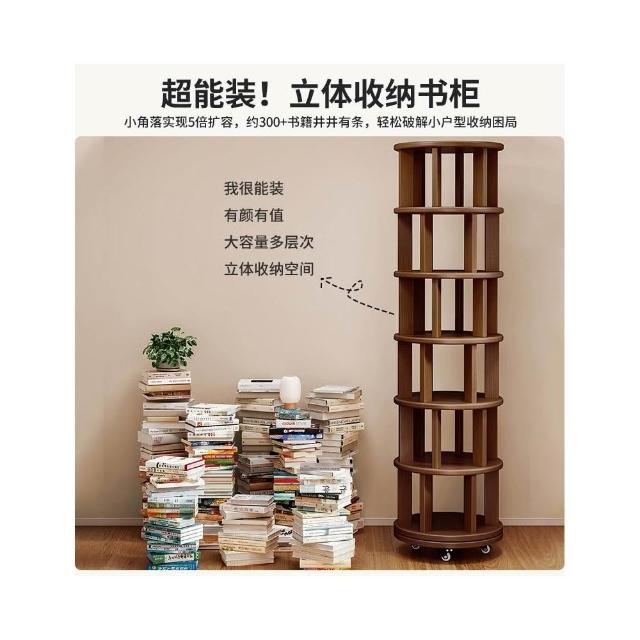 實木旋轉書 架360度落地 移動置物架 一體靠牆 邊小窄櫃家 用轉角書櫃