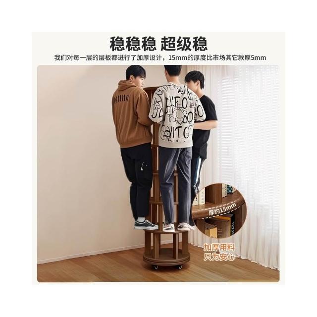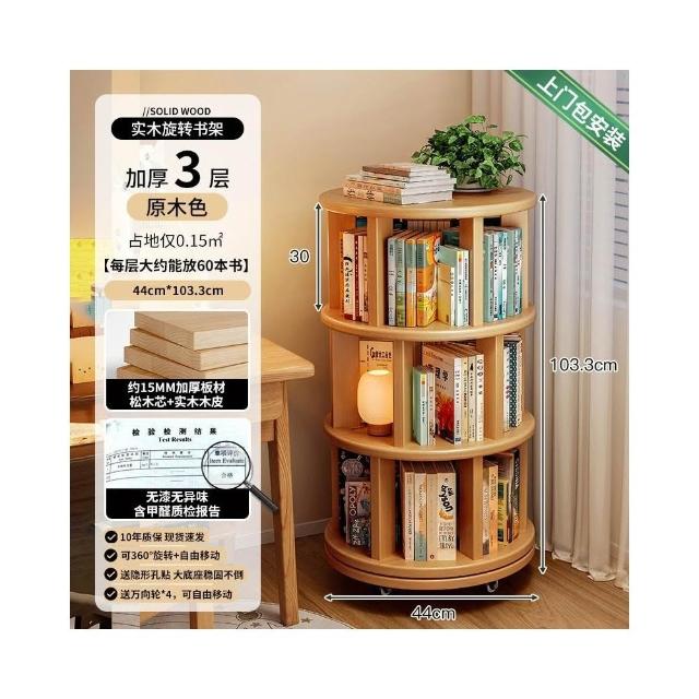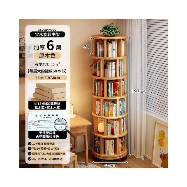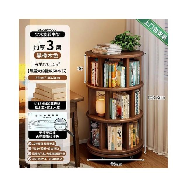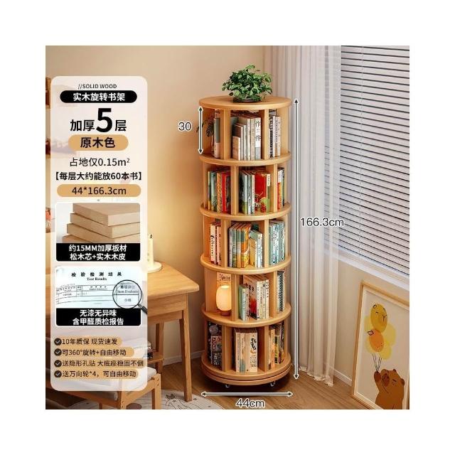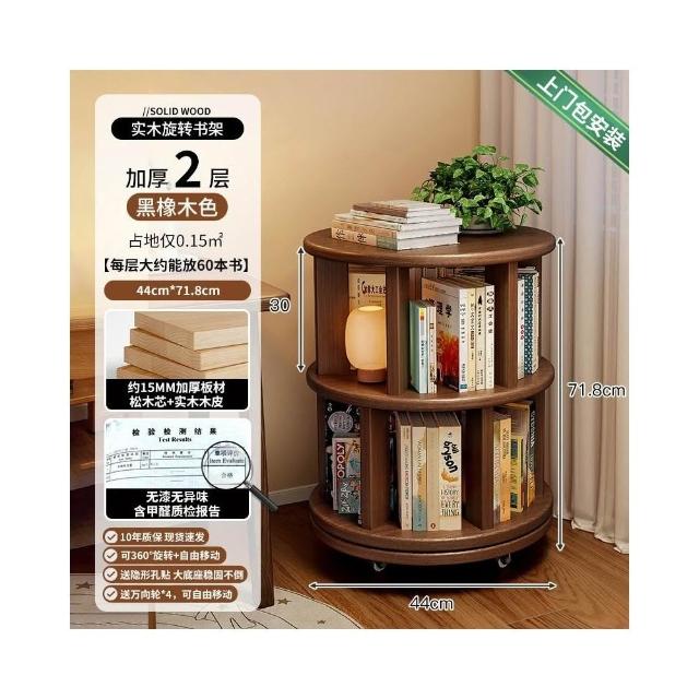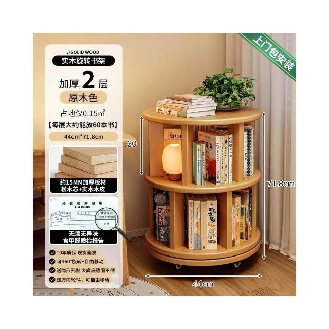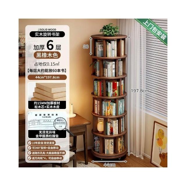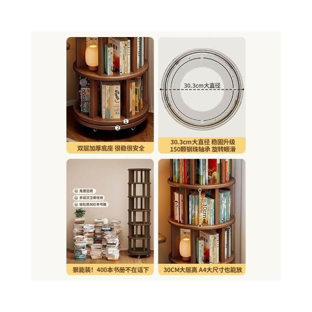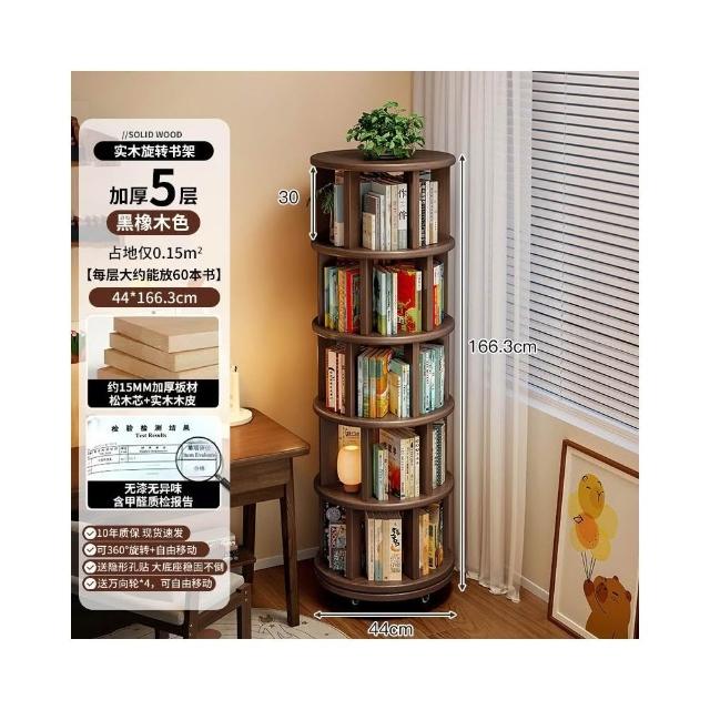 實木旋轉書 架360度落地 移動置物架 一體靠牆 邊小窄櫃家 用轉角書櫃