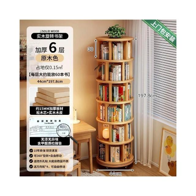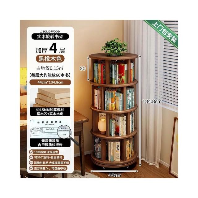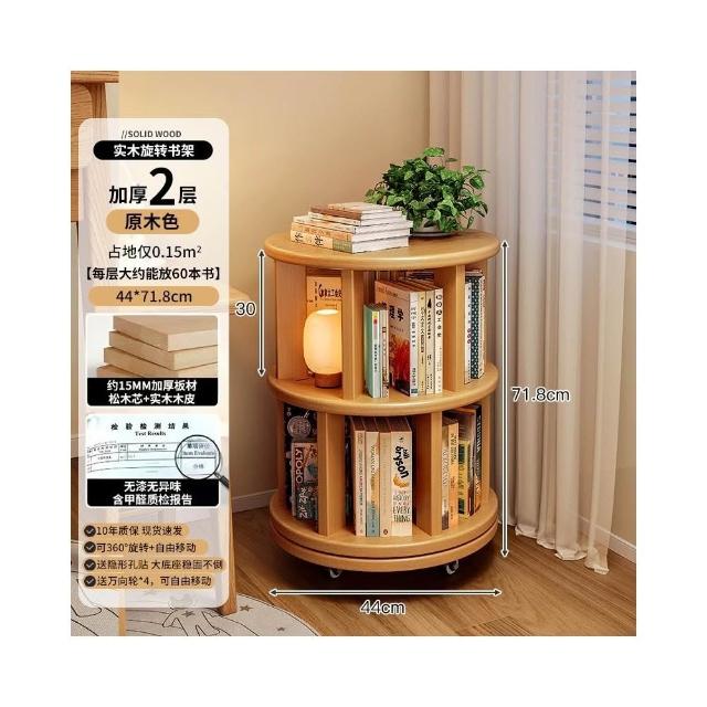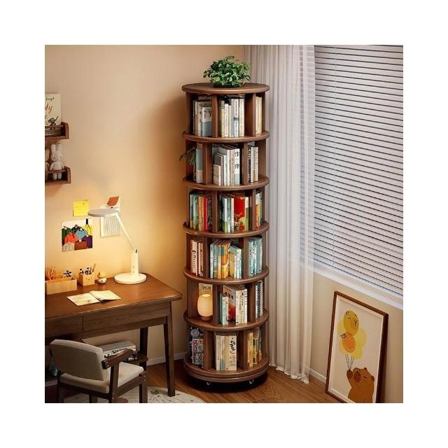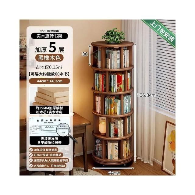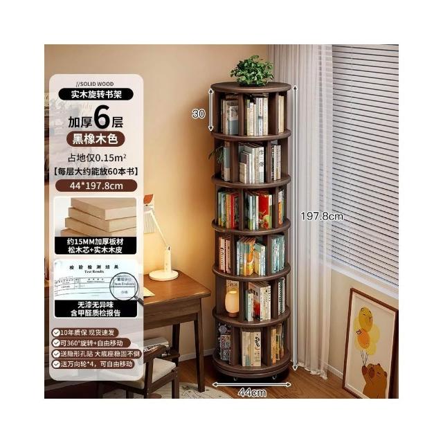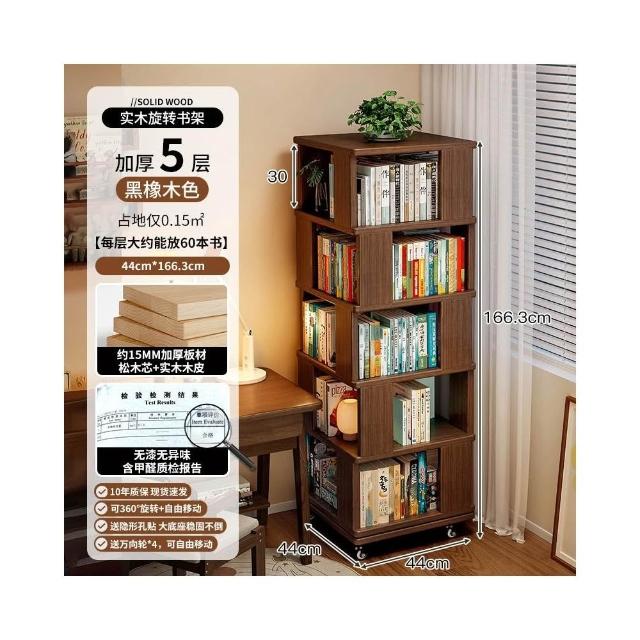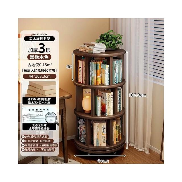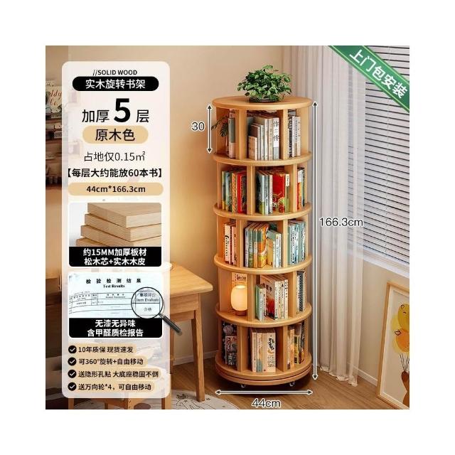 實木旋轉書 架360度落地 移動置物架 一體靠牆 邊小窄櫃家 用轉角書櫃