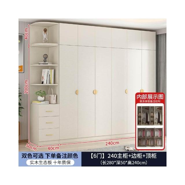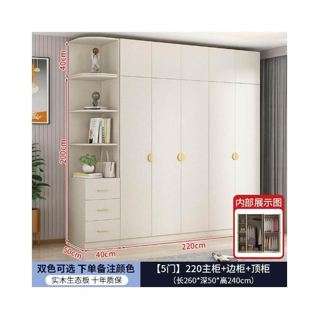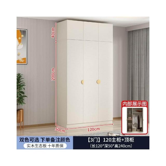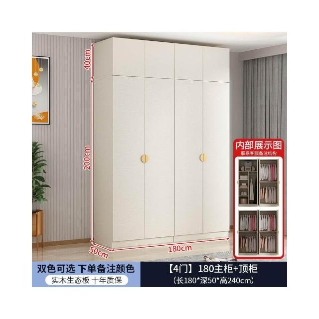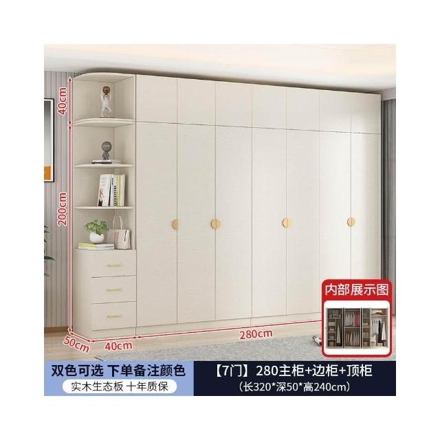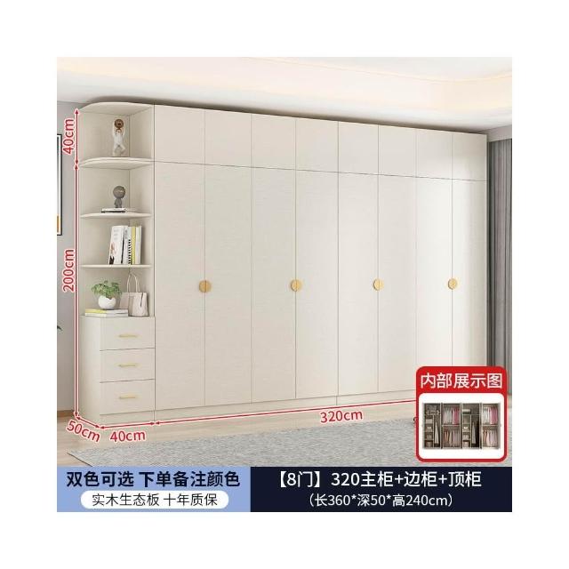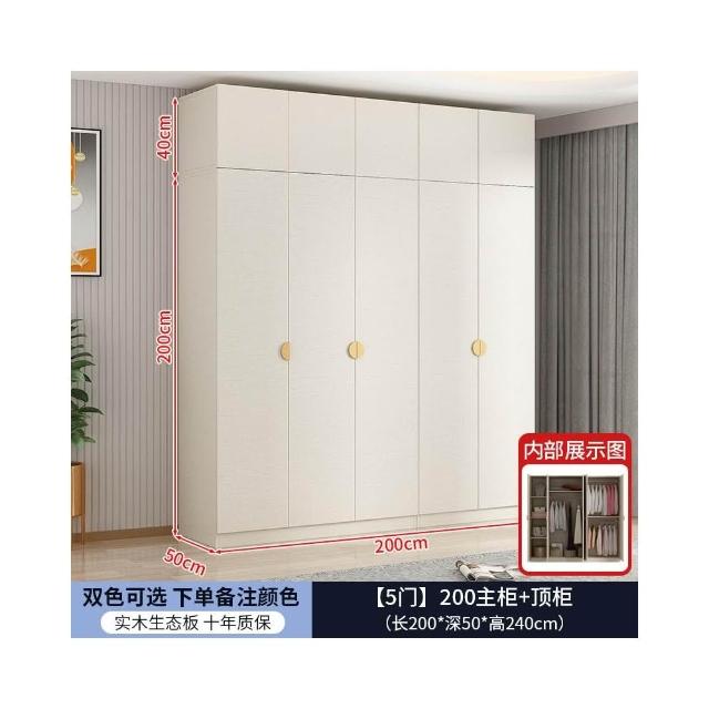 實木對開門奶油風衣櫃家用臥室 簡約多功能組裝衣櫥雙開門衣櫃