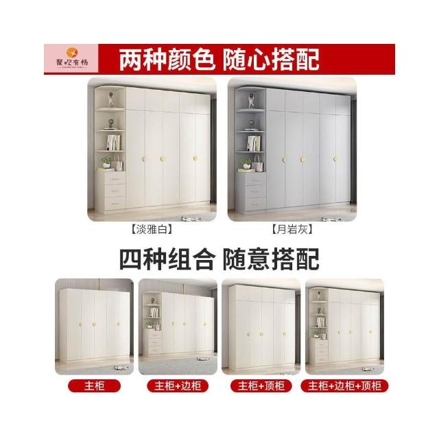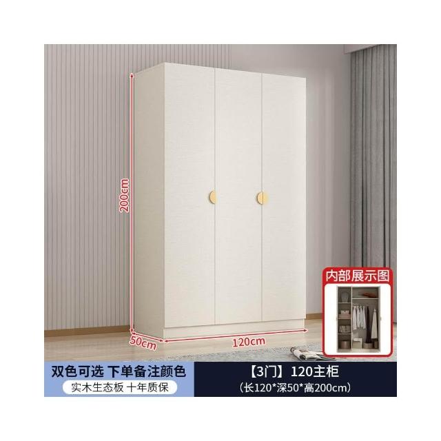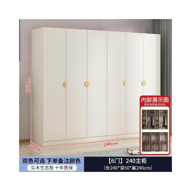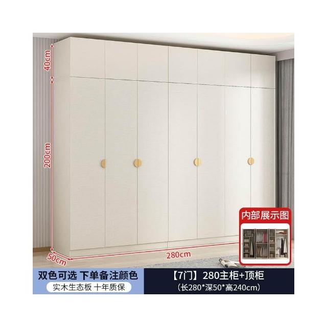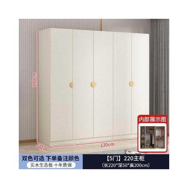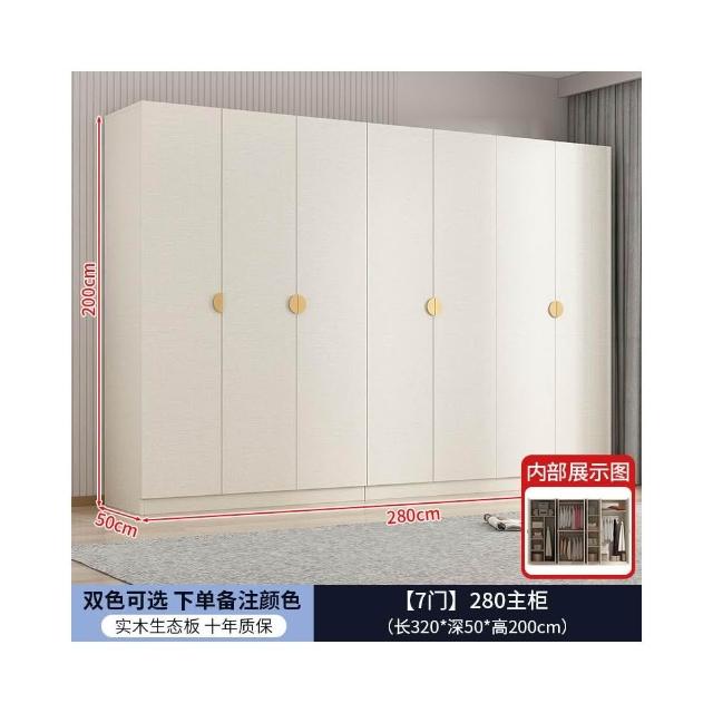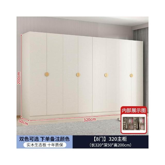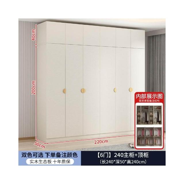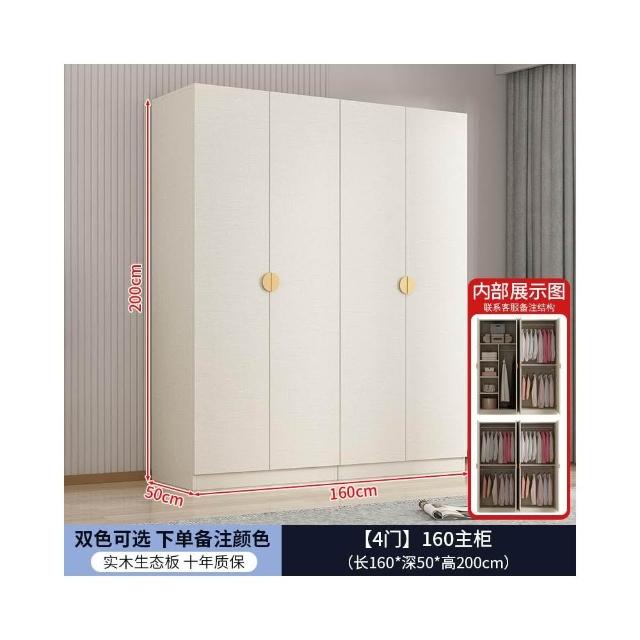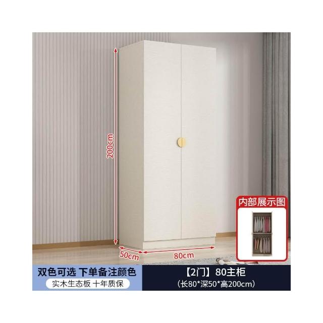 實木對開門奶油風衣櫃家用臥室 簡約多功能組裝衣櫥雙開門衣櫃