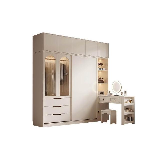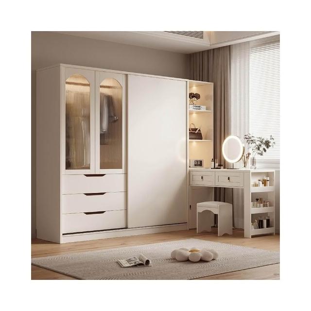 法式奶油風大衣櫃家用臥室 簡約 衣櫥儲物收納櫃書桌一體