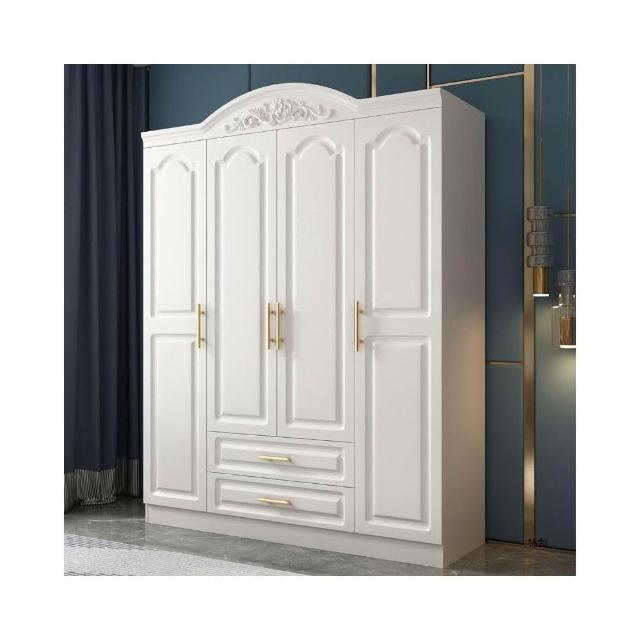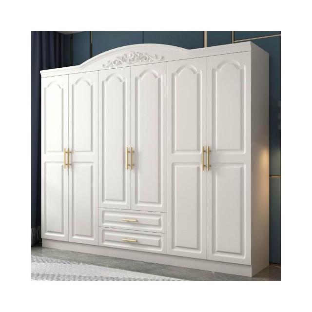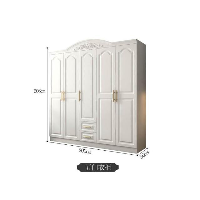 歐式衣櫃加頂櫃簡約 經濟型板式白色組合邊櫃木質六五門大衣櫥