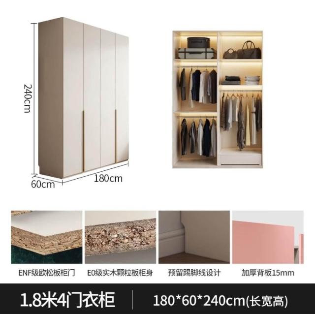 奶油风一门到顶实木衣柜梳妆台书桌一体转角柜主卧简约大衣橱组合