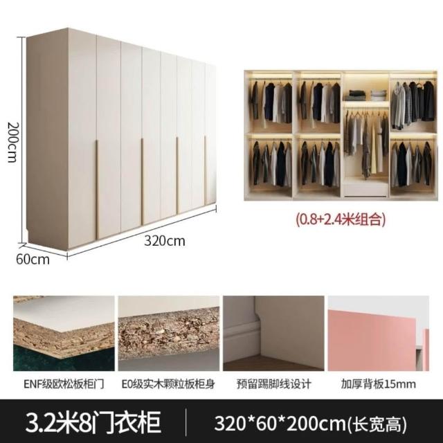 奶油风一门到顶实木衣柜梳妆台书桌一体转角柜主卧简约大衣橱组合