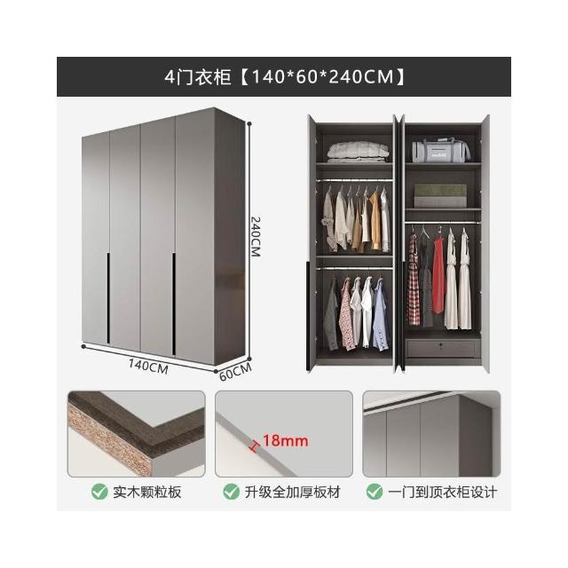 轻奢极简衣柜卧室家用灰色高级感成品衣柜组合挂衣区多平开门衣橱